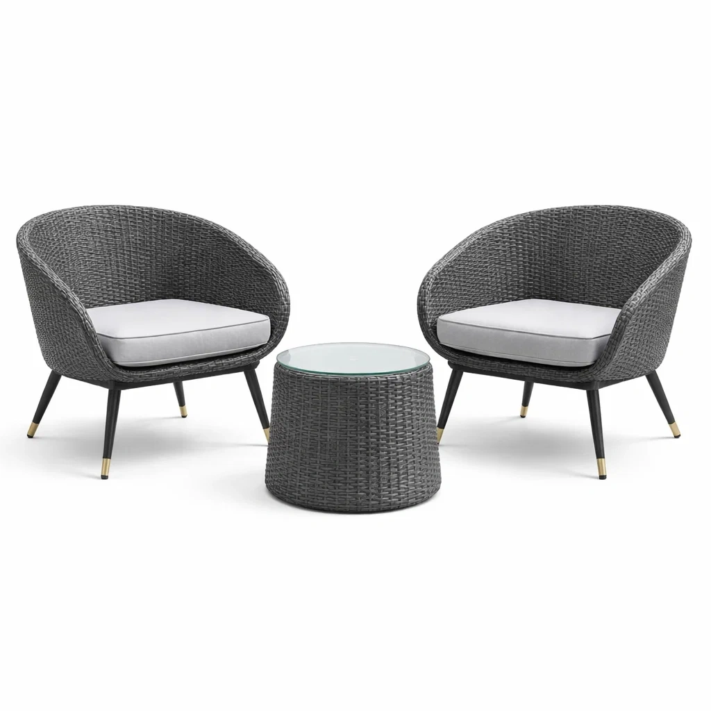 Dimensions : Chaise: 75 cm (largeur) x 80 cm (profondeur) x 70 cm (hauteur). Table: 50 cm (diamètre) x 45 cm (hauteur).
