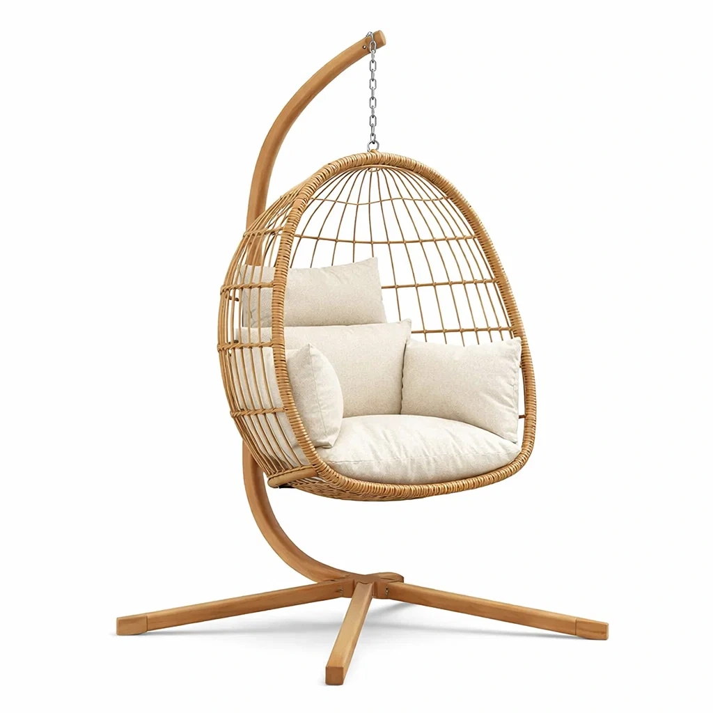 Fauteuil œuf suspendu en rotin avec coussins en polyester